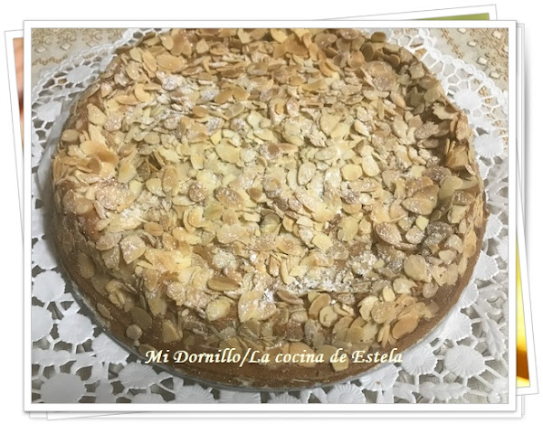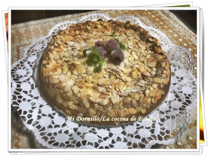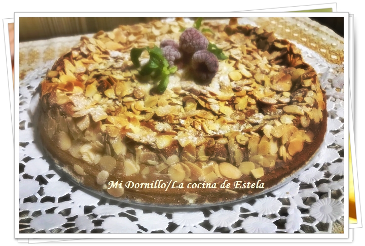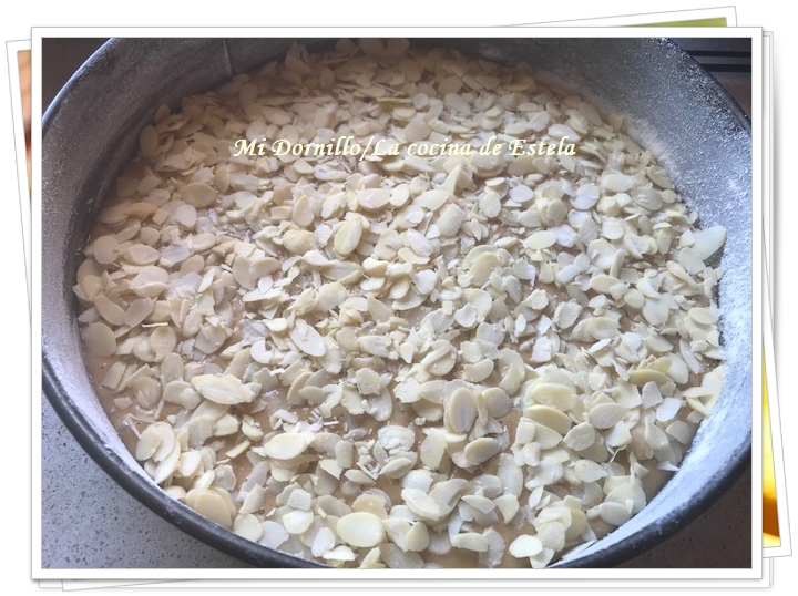 Pon la mezcla en el molde y encima cubre con las almendras laminadas, y reparte el azúcar glas por encima de todas ellas.