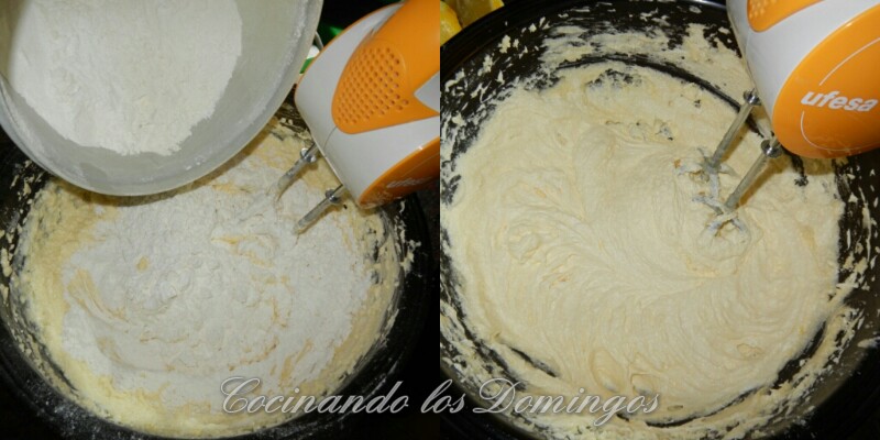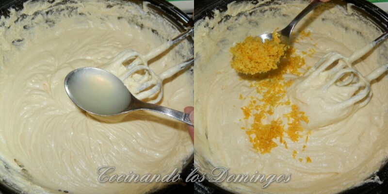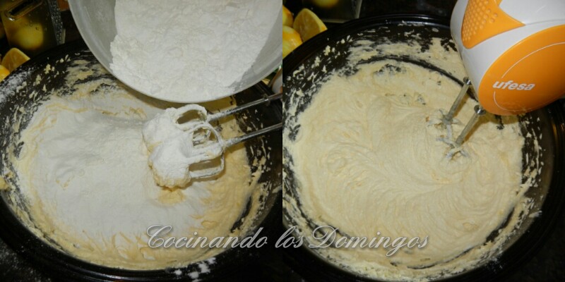Incorporamos la ralladura y las 3 cucharadas y 1/2 de jugo del limón y batimos.
