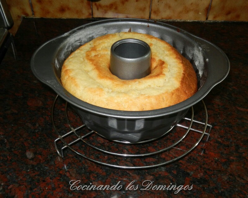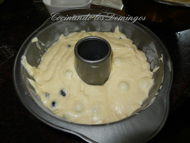 Vertemos en un molde mediano tipo "Bundt", el que tiene forma de corona con un tubo en la mitad. El molde debe estar muy bien engrasado y enharinado para que sea mas fácil desmoldar, llenar un poquito mas arriba de la mitad, para que la torta no se derrame cuando este en el horno.(nuestro molde es pequeño y debemos hacer 2 tortas).