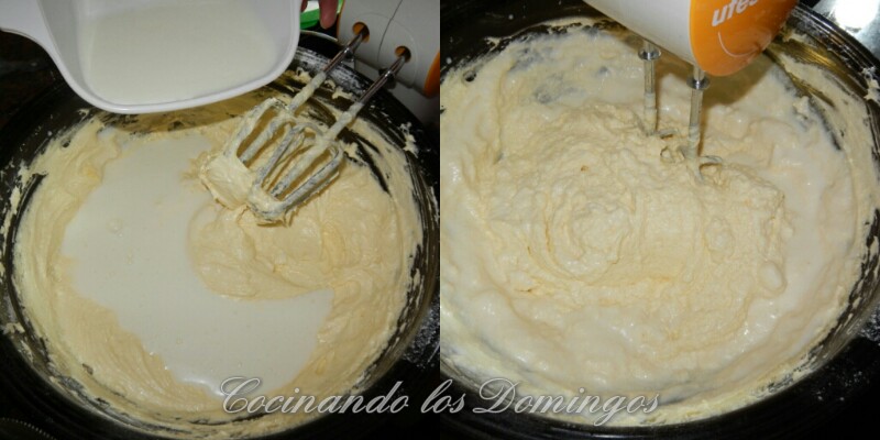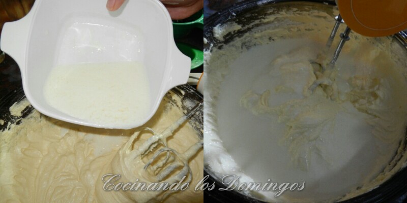agregar la mitad de la mezcla de la leche con limón (buttermilk) y seguimos batiendo