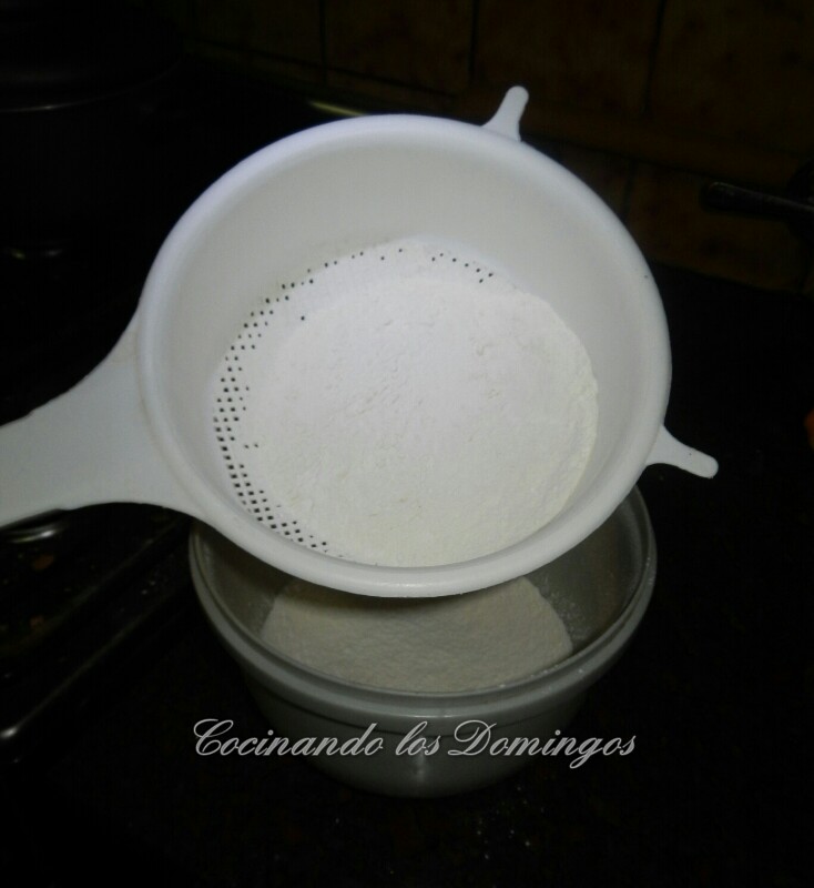 Aparte, tamizamos la harina, el polvo de hornear y la sal.