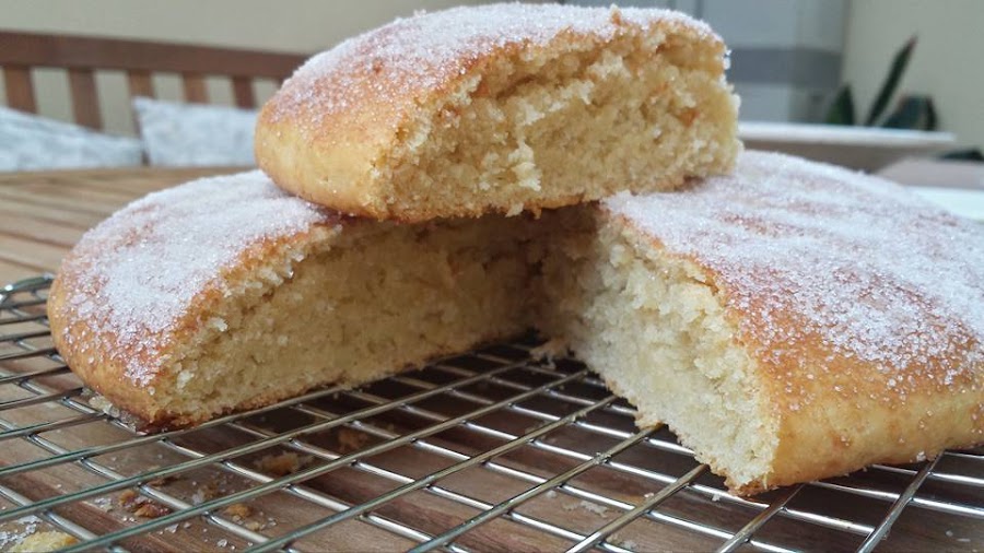Pasada la hora la masa habrá crecido, hacemos una bola y la ponemos en otro bol untado en aceite de oliva, tapamos con film transparente y metemos en la nevera mínimo unas 4h (yo la hice anoche para desayunar esta mañana)sacamos de la nevera y le damos forma de torta con las manos sobre una bandeja de horno forrada en papel vegetal, dejamos otros 20-30min que suba la masa, espolvoreamos con abundate azúcar por encima y horneamos a 220º (con el horno precalentado)unos 25min.