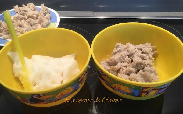 Picamos los chicharrones con una picadora reservando unos cuantos para poner por encima de la torta. Mezclamos los chicharrones picados con la manteca a temperatura ambiente.