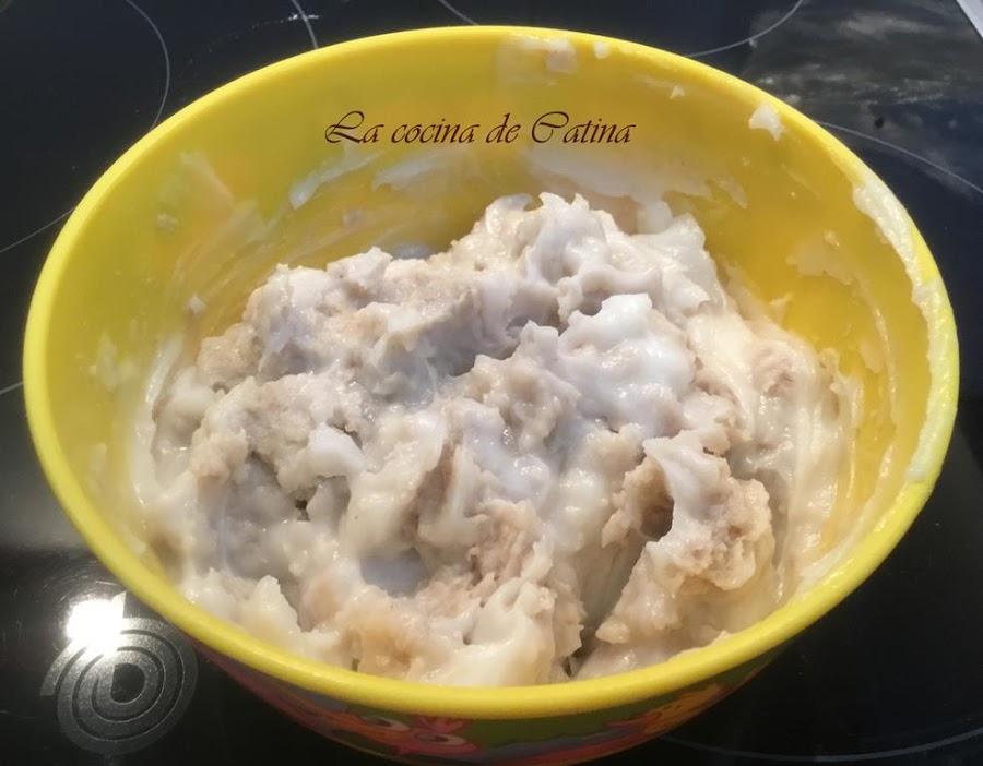 Diluimos la levadura en la mezcla de leche y agua templada, la dejamos reposar unos 15 minutos.