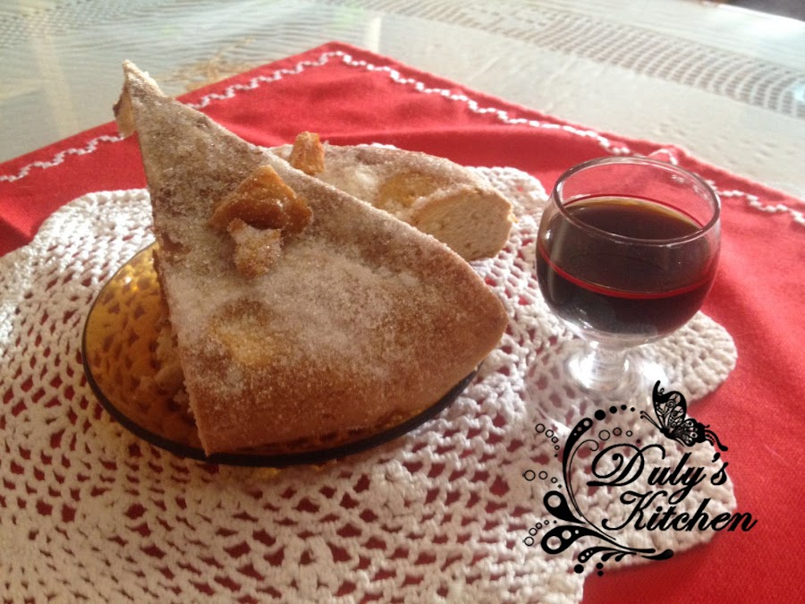 15. Se pueden colocar unos trozos de chicharrón encima de la torta o directamente sólo cubrirla de azúcar, y para terminar haced unas marcas con la punta de los dedos por toda la superficie.