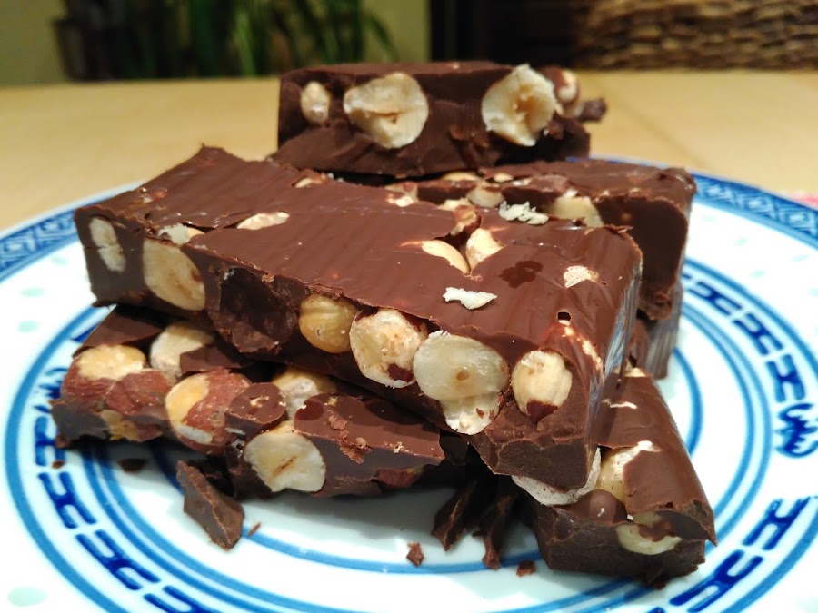 Seguimos adelantando provisiones para Navidad, esta vez ha tocado chocolate. Sale muchísimo mejor que los comprados, y lo mejor de todo es que no lleva nada, nada de azúcar añadido. Estos son de los que pones en la mesa y vuelan los primeros! Si no encontráis los frutos secos tostados, compradlos crudos y los tostáis en una sartén antiadherente sin nada de aceite. Queda infinitamente más bueno!!
