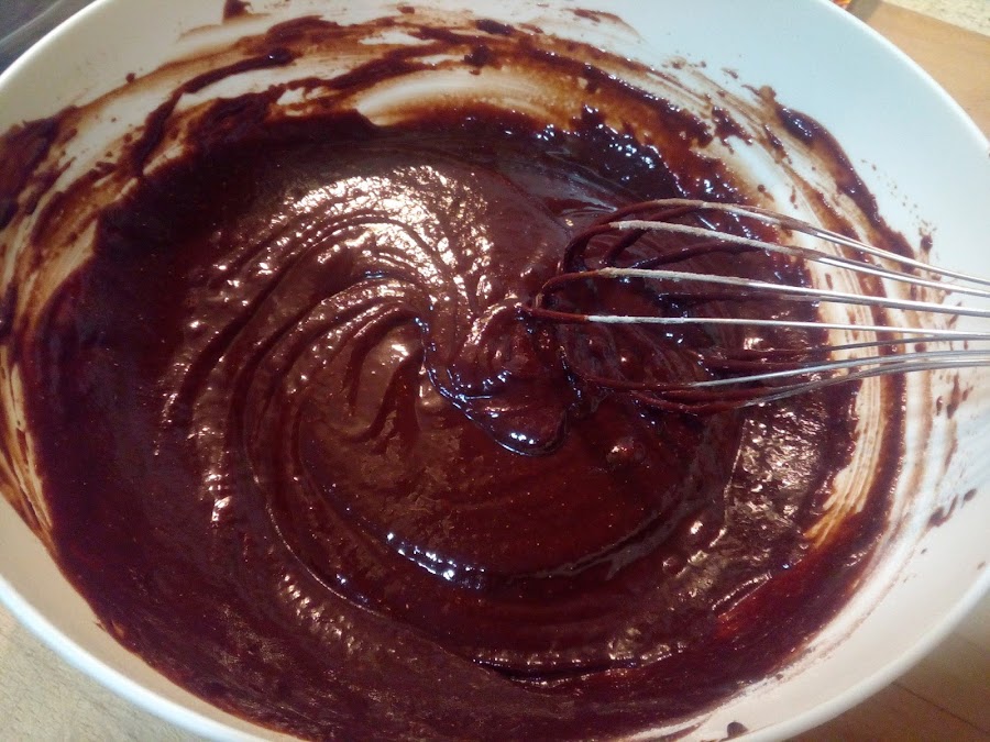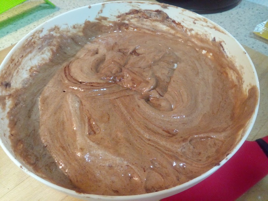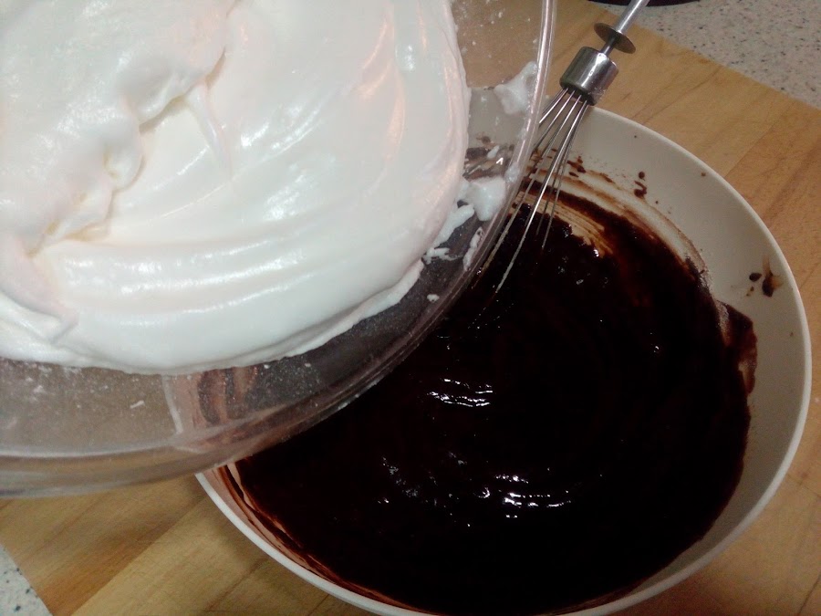 Incorporar las claras de huevo a la mezcla de chocolate,