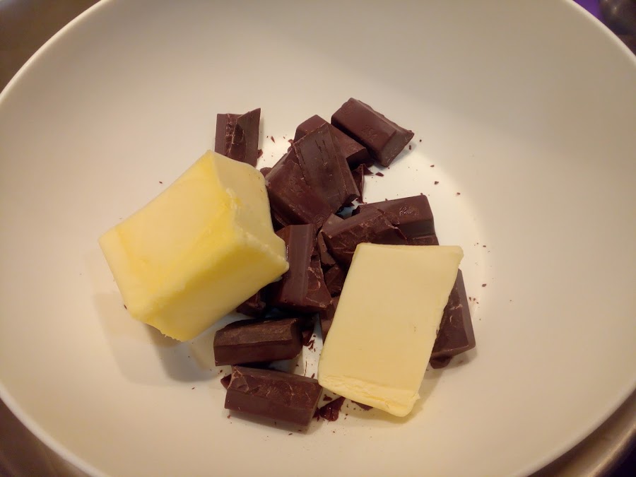 En un cuenco poner la mantequilla y el chocolate troceado