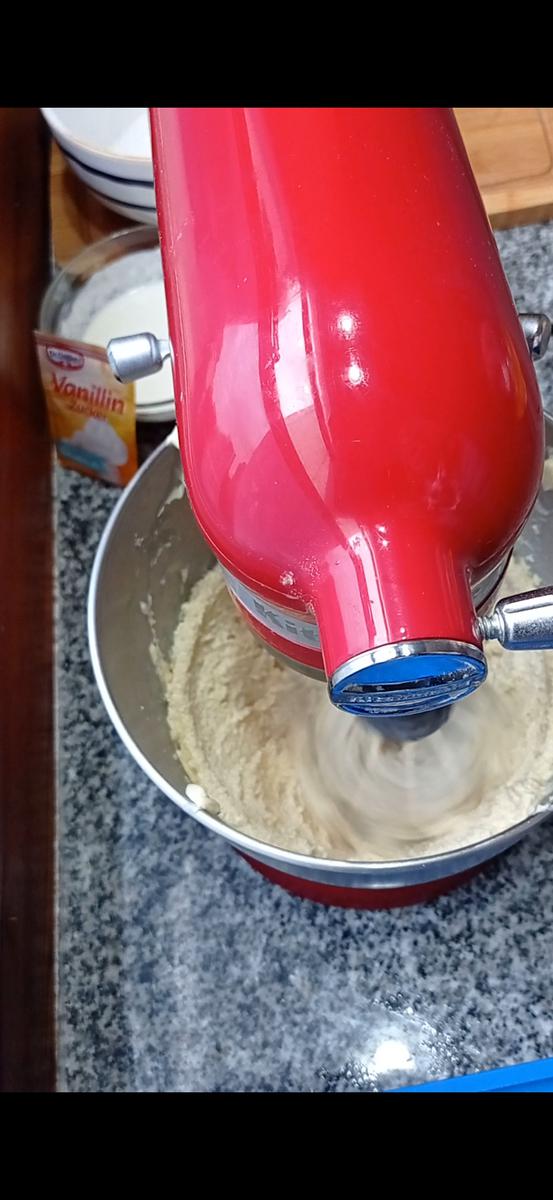 Batimos la manteca con el azúcar hasta que se forme una crema y cambie de color a mas blanco.Añadimos la esencia y los huevos de a uno, batiendo después de agregar cada uno.