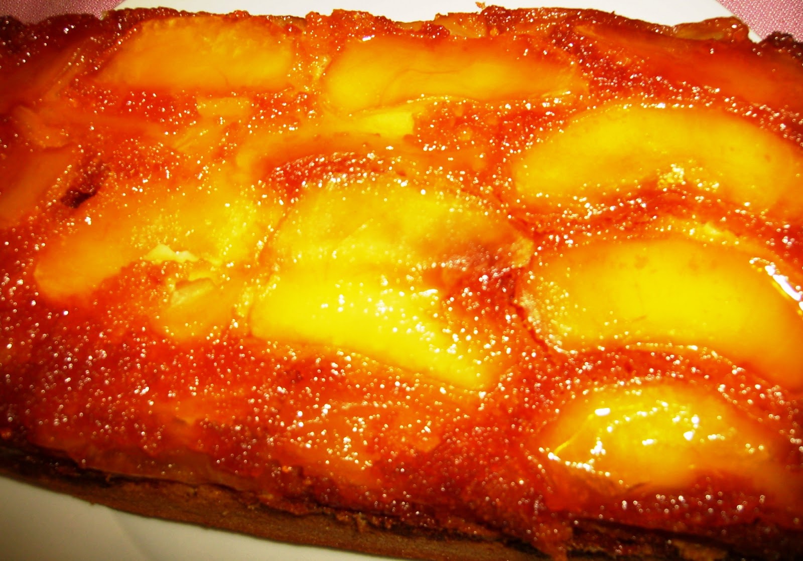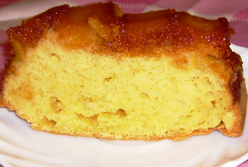 Esta tarde, quería hacer un bizcocho y tenía manzanas. Primero pensé hacer el clásico bizcocho de manzana, pero pensé: ¿porqué no hacerla al revés?. Básicamente es lo mismo, solo que ponemos la manzana en el fondo del molde con un poco de caramelo. El resultado es, una torta muy jugosa y con sabor a manzana, claro.