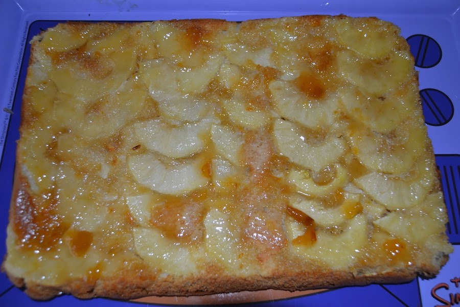 Si la sacaste pronto y abajo ( la parte de las manzanas) no se llego a caramelizar, si queres para darle un poco de brillo, pintala con mermelada de naranja, o de durazno.