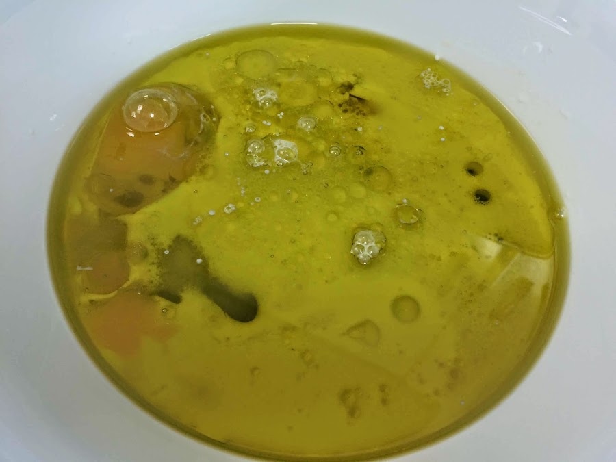 En un recipiente amplio ponemos los huevos, el aceite, la leche y el azúcar. Batimos hasta que la mezcla quede homogénea.