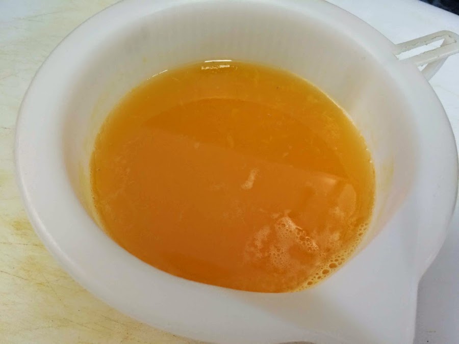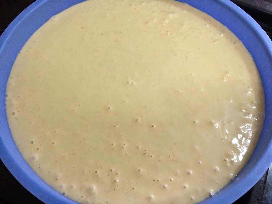 Añadimos el zumo de naranja y la harina tamizada junto con el bicarbonato y la canela. Mezclamos bien todo el conjunto y lo ponemos en un molde para hornear.