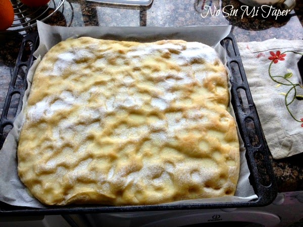 Según la receta, llega para hacer dos tortas redondas, pero en casa somos lo peor con esto, y ni corta ni perezosa, yo me hice una torta gigante con la bandeja del horno. Lo peor es que ya nos hemos bajado la mitad con el café de la sobremesa. Un desastre.