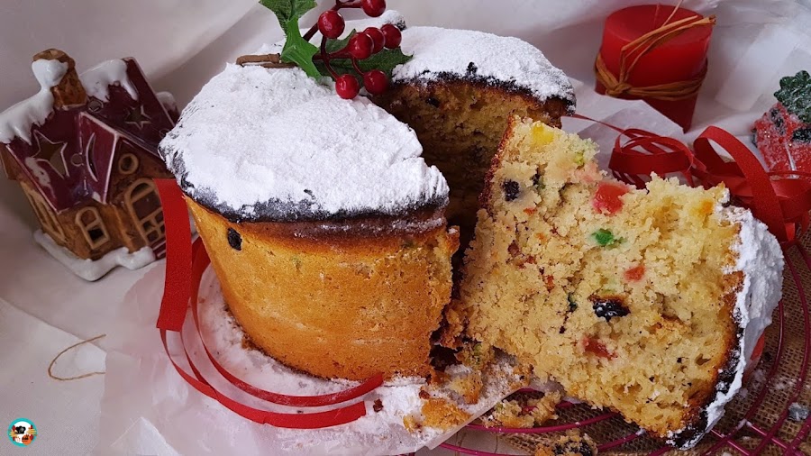 Os aseguro que busque y lei muchas recetas para hacer el dulce de hoy. Me hacia mucha ilusión hacer el típico dulce italiano de navidad. Pero, mi gozo se fue al fondo de mi paladar cuando corte el supuesto panettone y vi que tenía la misma forma que una torta o bizcocho de navidad.
