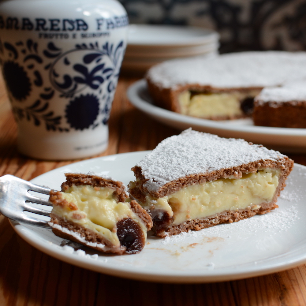 Para el relleno:Leche 500 gr, almidón de maíz o harina 40 gr, azúcar 150 gr, ralladura de limón 1/2 u, yema 1, queso mascarpone 250 gr y amarena o dulce de cerezas c/n.