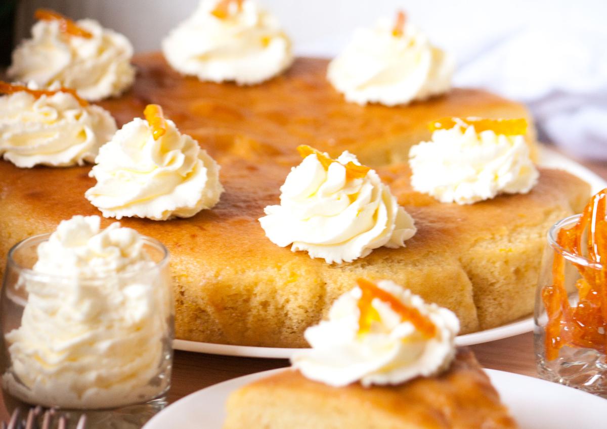 Esta torta de sémola griega es esponjosa, con un sabor intenso a naranja y completamente mojada en un jarabe de miel.