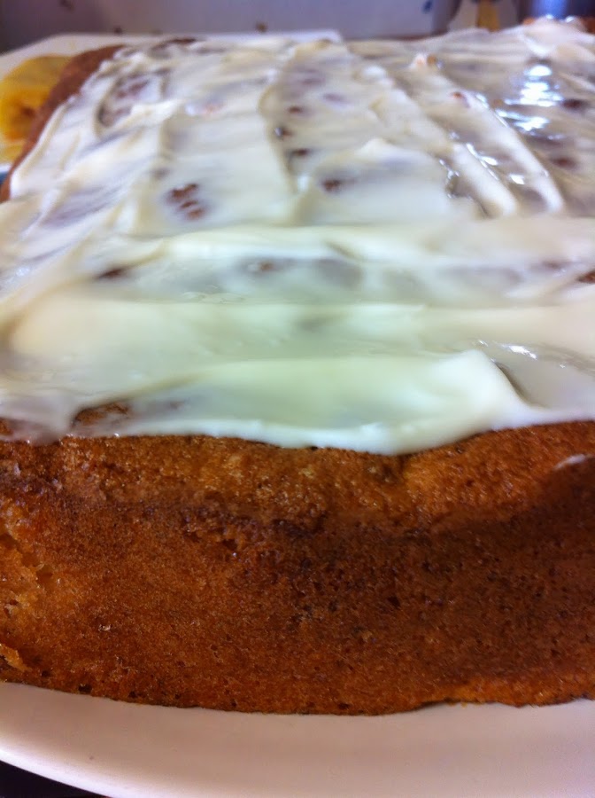 Poner en el molde y hornear durante 40 min. La sacamos y cuando este totalmente fria le añadimos el glaseado. El glaseado se prepara disolviendo el azucar glas en leche tibia.