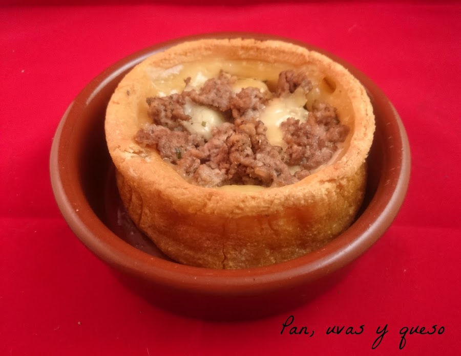 Rellenamos el queso con la carne y horneamos durante 15 minutos.