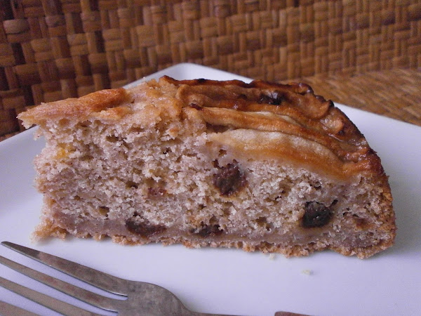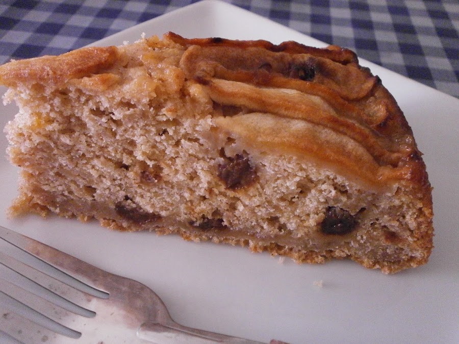 Verter en un molde engrasado y enharinado, y luego distribuir las rodajas de manzana y unas cuantas pasas.