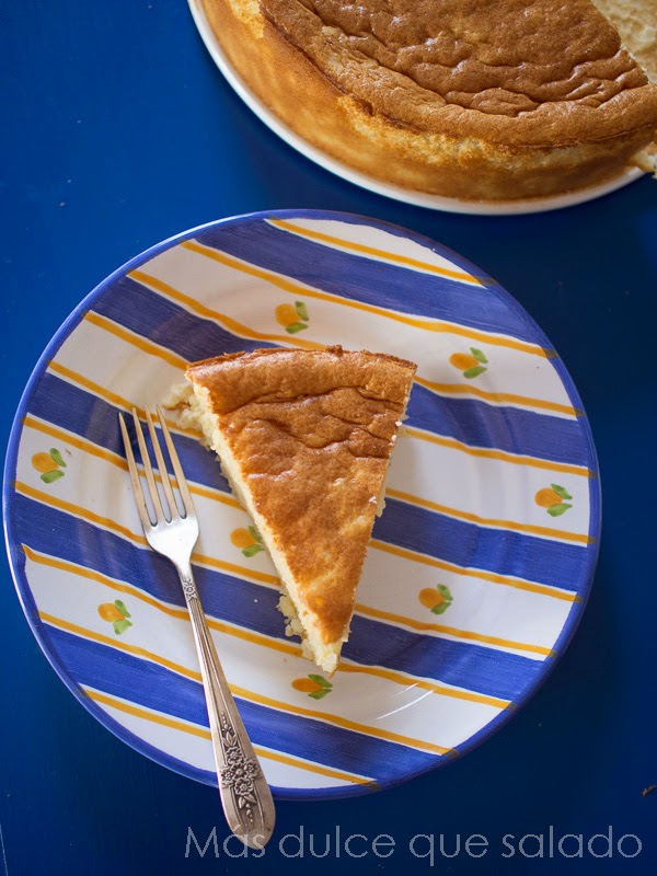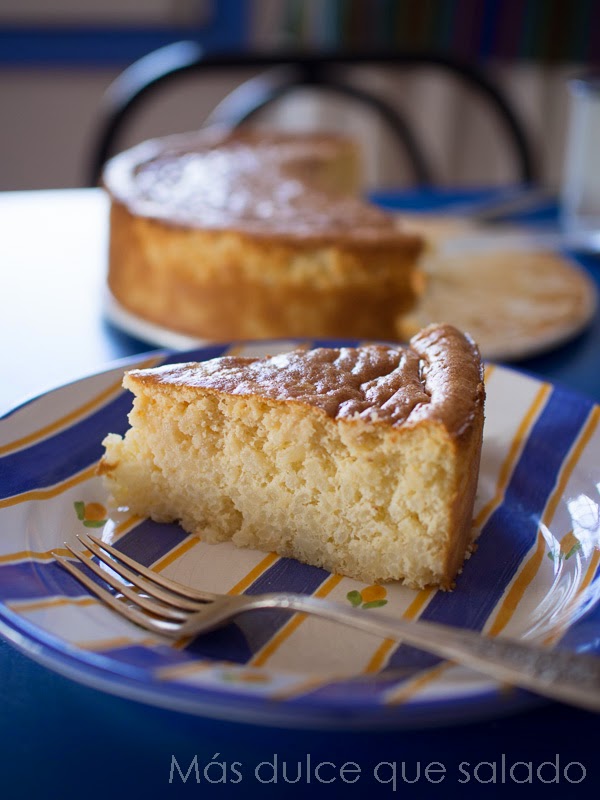 He variado un poco la receta original que me mandó Margot, no le he puesto frutas escarchadas porque a mis hijas no les gustan, pero pienso que le darían más sabor y color a la tarta. La tarta no ha tenido todo el éxito que pensaba cuando la estaba elaborando. Es una tarta un poco insulsa, por eso pienso que la fruta escarchada la puede mejorar. Sinceramente, no creo que la vuelva a repetir, le falta chispa y gracia, pero estoy segura de que a más de un@ le gustaría, yo me he vuelto un poco tiquismiquis con los dulces, y cuando repito algo es que me ha gustado, pero mucho, mucho.