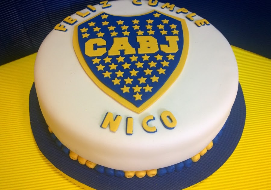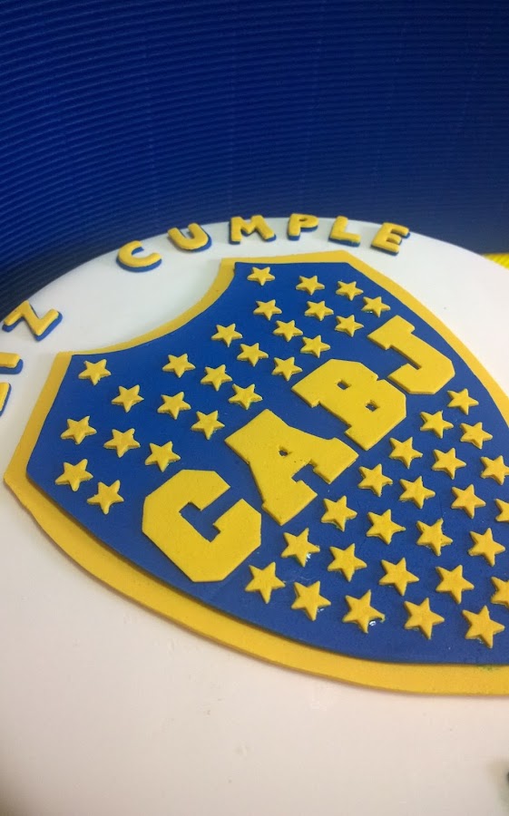 Torta escudo Boca Juniors...Para Nicolas ...Forrada con fondant, y aplique escudo de pasta de goma...bizcochuelo de chocolate , relleno de crema de avellana y dulce de leche... y