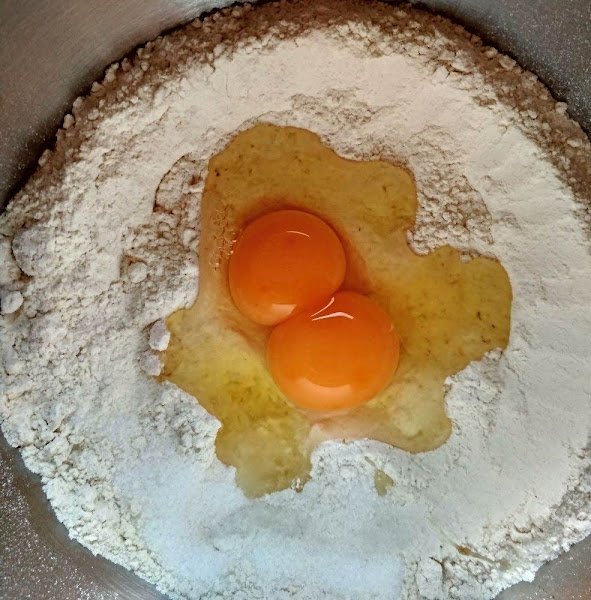Amasamos a mano, unos 10 minutos. En máquina amasadora (KA), 3-4 minutos aproximadamente. Hasta que la masa se separe de las paredes y estén bien integrados los ingredientes.