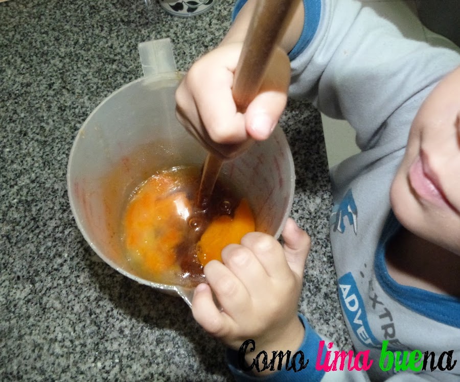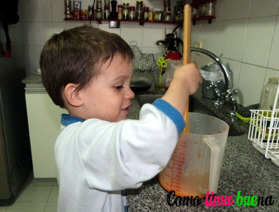 En esta receta tuvimos la colaboración de uno de nuestros ayudantes de cocina más importantes, ya verán las fotos ;)