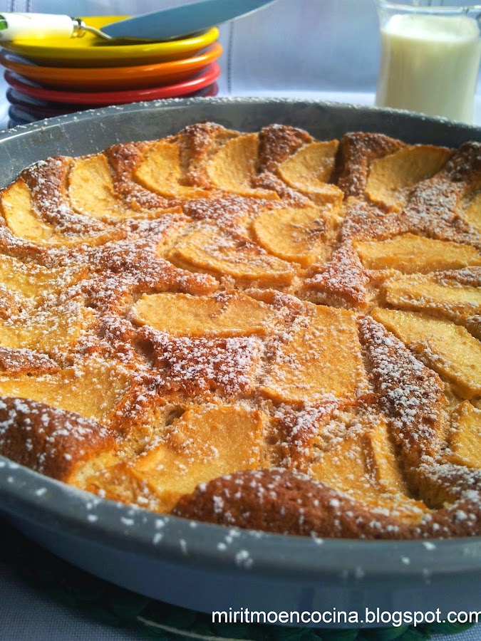 Debido a la poca cantidad de harina esta torta queda de una consistencia algo húmeda casi que como un clafoutis