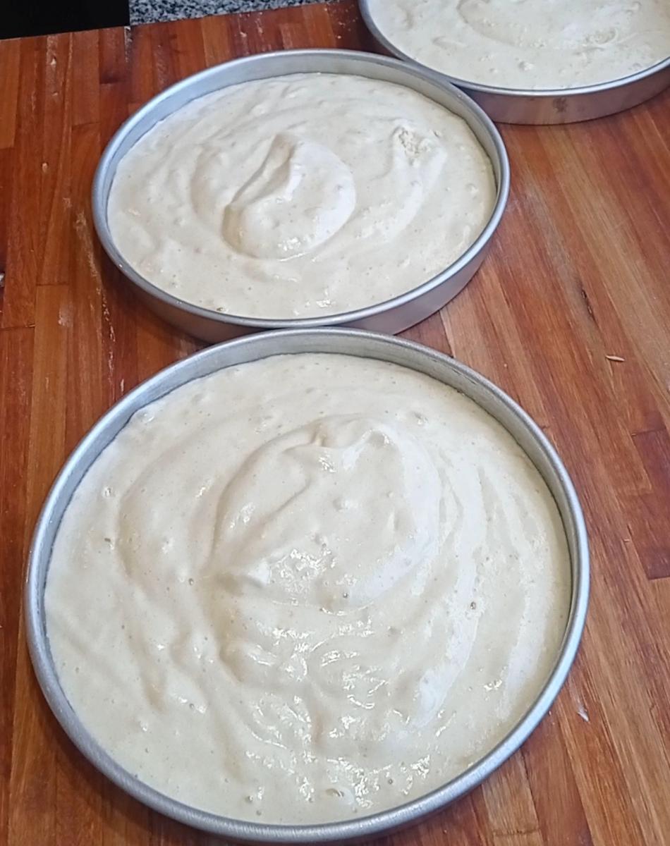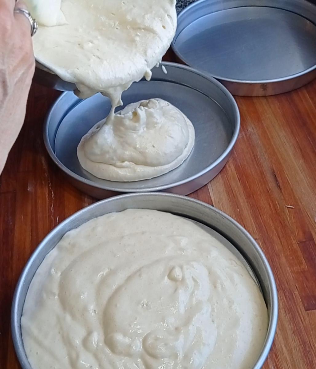 -LLená el molde más de la mitad, ésta no es una torta que en el horno crezca mucho, porque ya tiene un leudado en el batido, al poner agua hirviendo es como si hicieras un sabayón, me dijo,, es como si estuviera precocida.