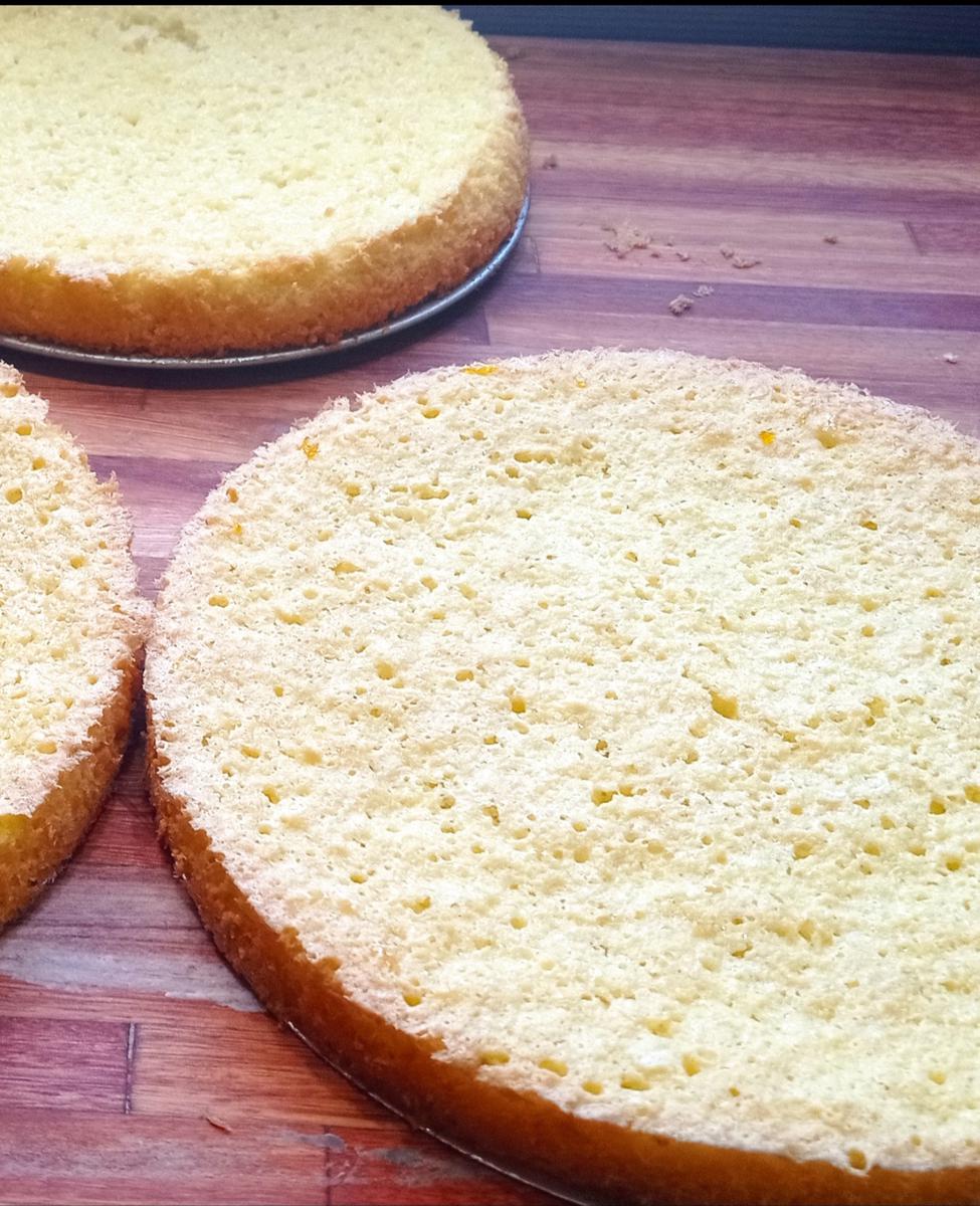 Una vez frío, cortar en capas, y apoyar sobre la fuente que quedará la torta,