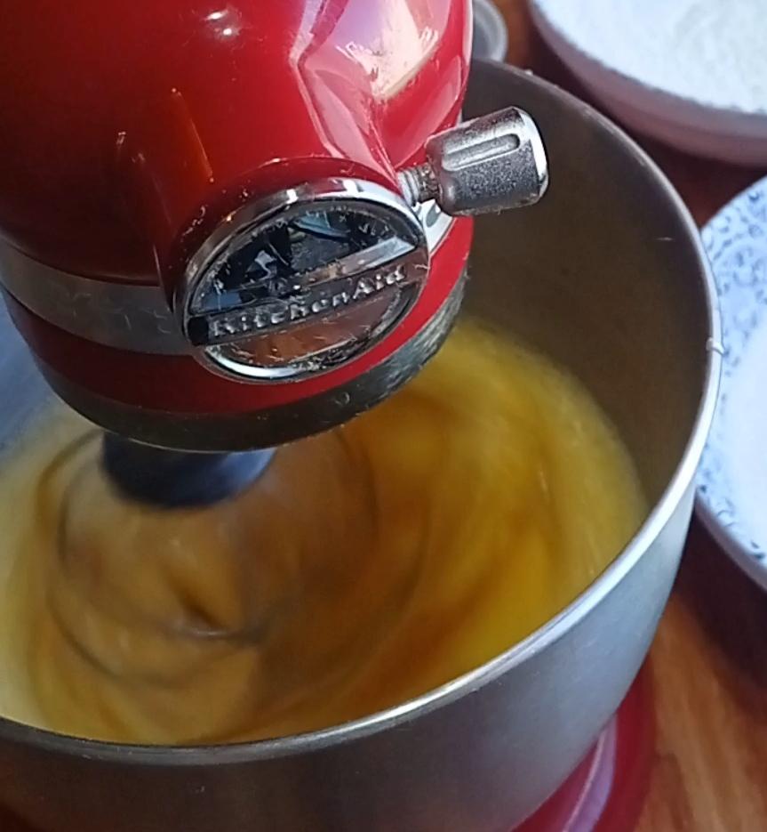 Espumar un poco los huevos, batiendo uno o dos minutos y agregar la esencia