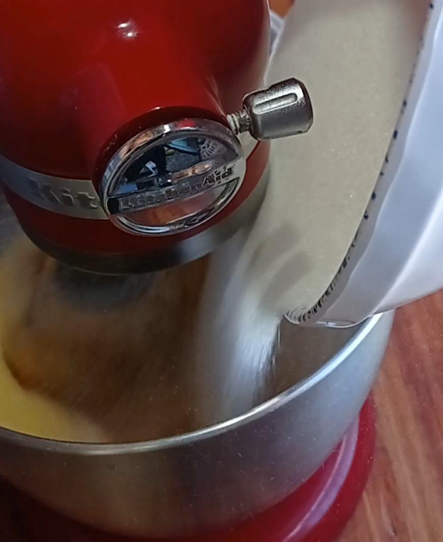 Añadir la harina cernida con el polvo para hornear, ir agregando de a poco en forma de lluvia y con movimientos envolventes para no bajar el batido