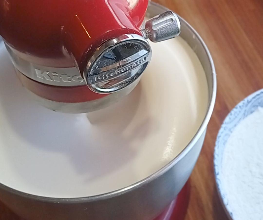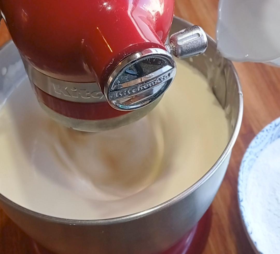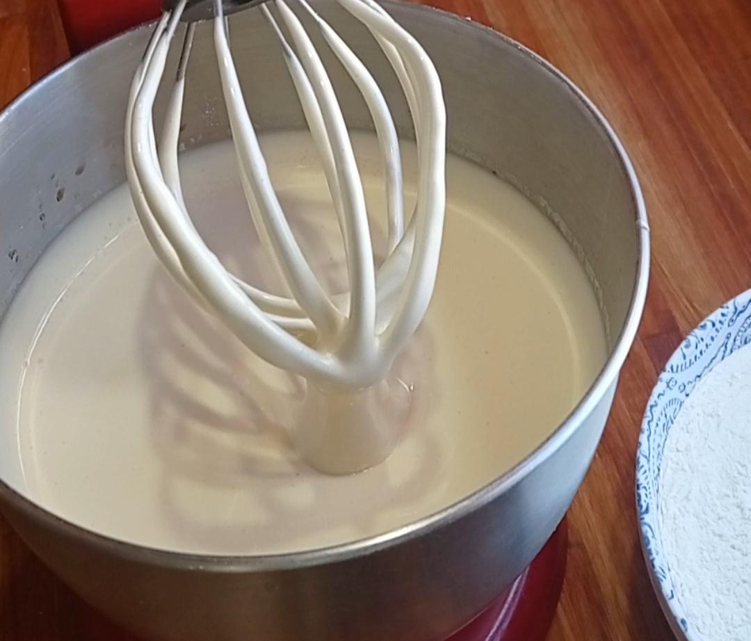 Agregar de a poco en forma de hilo , el agua hirviendo, ( usa un bol bien grande, el batido crece muchísimo!!)