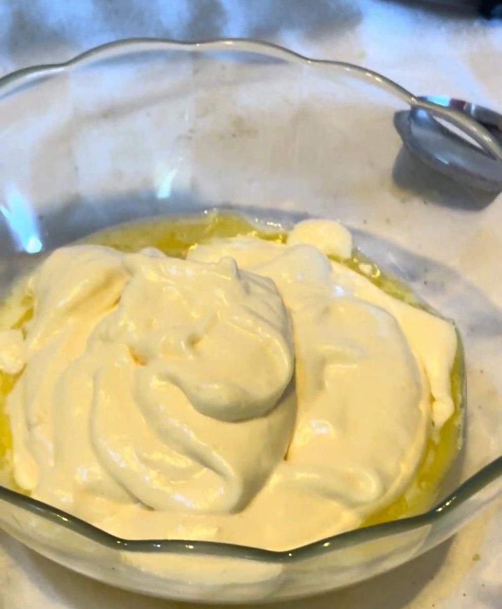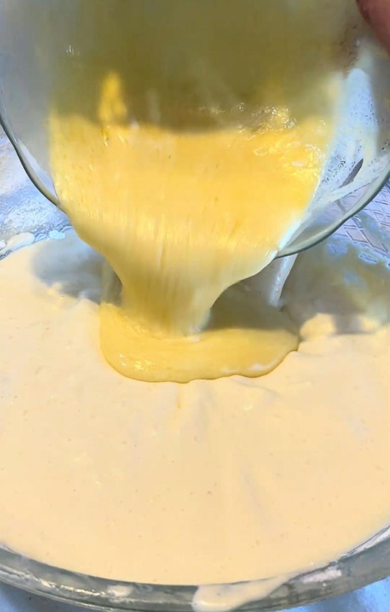 4_ Derretir la manteca y en un bol mezclarla con un poco de la preparación , para no volcar directamente al batido , luego incorporar a la mezcla con movimientos envolventes