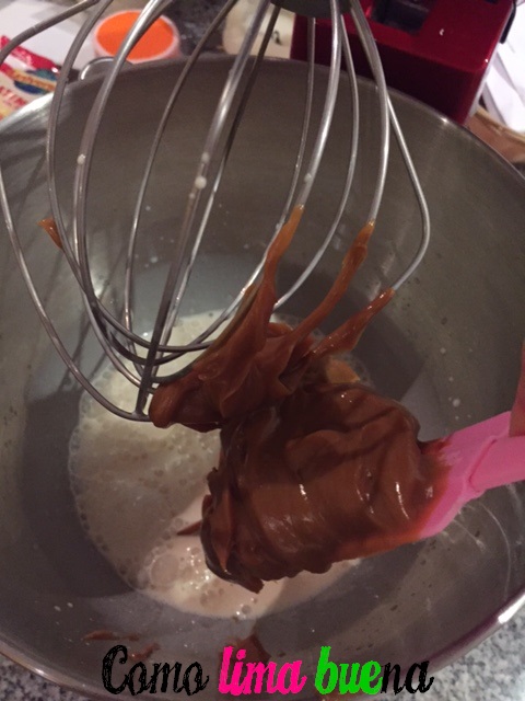 Agregar el dulce de leche, seguir batiendo hasta incorporar bien