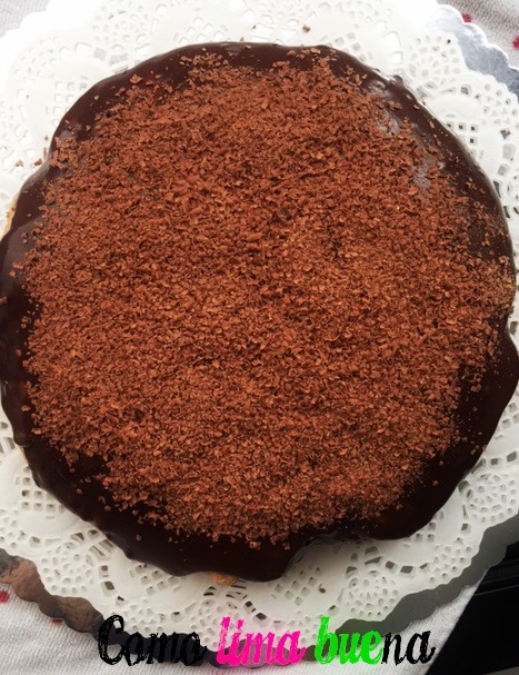 Desmoldar con cuidado. Derretir el chocolate con un poco de crema de leche (hacer una ganache) y cubrir la torta. ¡Disfrutar!
