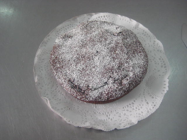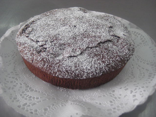 Preparación: Fundir el chocolate con la margarina en el microondas Remover para incorporar los dos ingredientes y reservar. Montar los huevos con la mitad del azúcar hasta que estén blanqueados y reservar. Mezclar la almendra molida con el resto del azúcar. Unir con movimientos envolventes la almendra molida con los huevos y cuando esté bien mezclado agregar poco a poco la mezcla de chocolate y margarina. Colocar la mezcla en un molde engrasado y cocer en el horno a 200ºC durante 5 minutos y luego bajar a 180 y continuar la cocción 30 minutos más. Debe quedar el interior jugoso. Dejamos enfriar a temperatura ambiente y al final espolvoreamos la superficie con azúcar glas.