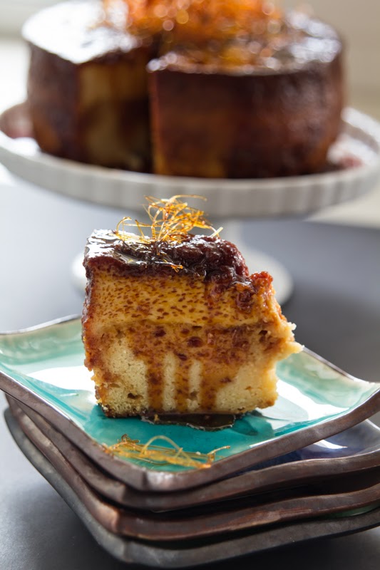 Aquí se ven las dos capas, arriba el quesillo, abajo el bizcocho
