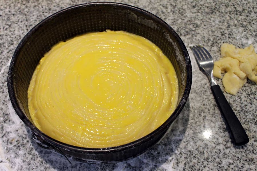 - Preparar un molde de 24 cm de diametro y al menos 5 cm de alto, enmantecado (o aceitado) y enharinado