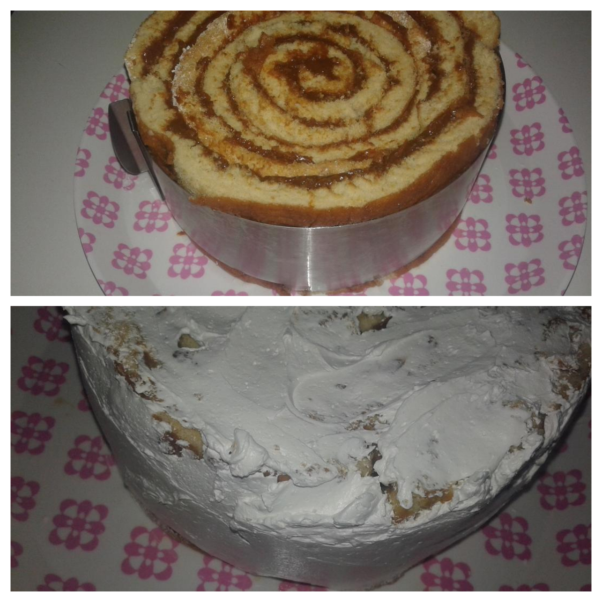 Ayer, haciendo limpieza en mi yahoo, encontré estas fotos,ya ni me acordaba que las tenía. Lo preparé en mayo, ¡lo qué ha llovido!,. Fuimos a la casa de mi suegra a merendar y en vez de llevar un rollo relleno con dulce de leche, preparé esta tarta.