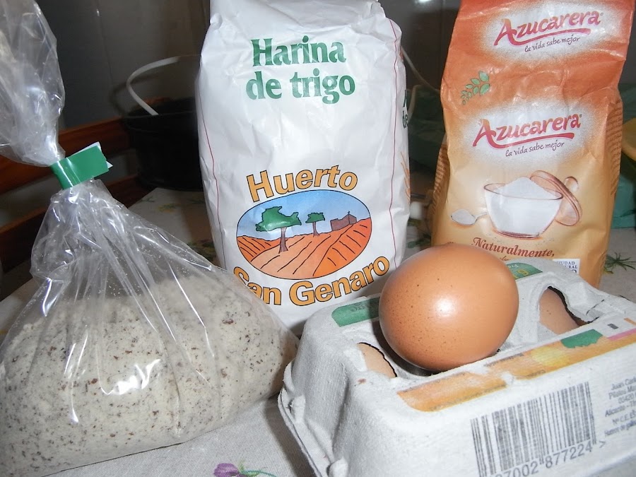 Las cantidades que me dió Mari Carmen son para la de docena (aunque ella pone 13 huevos) pero como mi molde es más pequeño yo la hice de media docena: