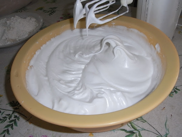 Lo primero es separar las yemas de las claras y montar las claras con una batidora de varillas hasta que estén bien duras. Añadimos el azúcar poco a poco y volvemos a montar hasta que el merengue haga picos.