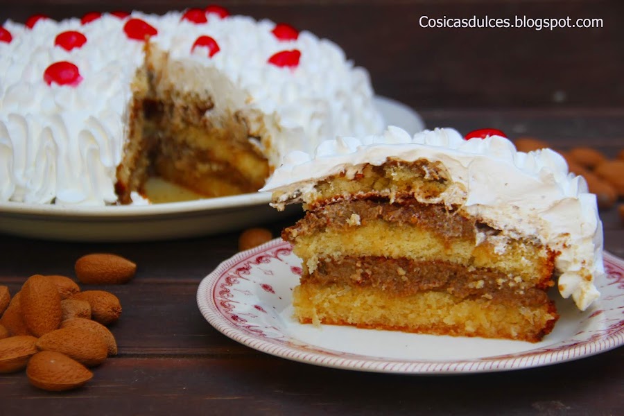 Finalmente cubrimos la tortada de merengue, decoramos con unas guindas y listo.