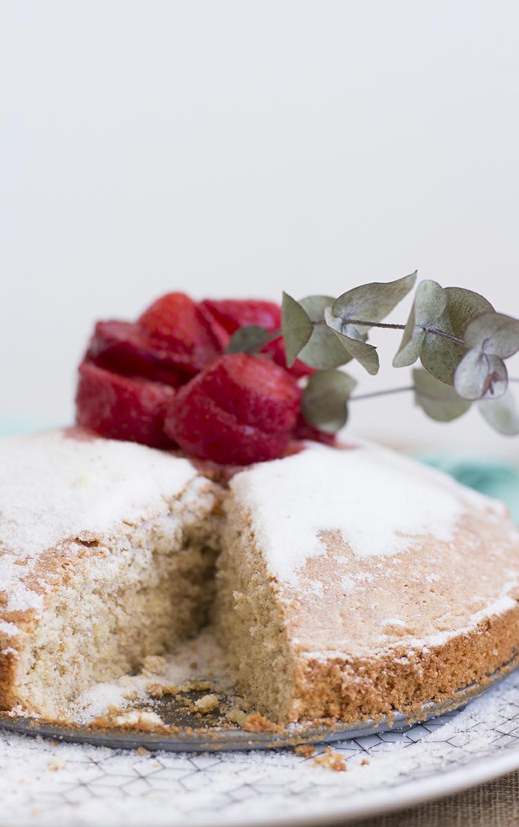 Trituramos las almendras y el azúcar y reservamos. Montamos las claras a punto de nieve con la sal. Una vez estén bien montadas vamos añadiendo poco a poco los ingredientes en el siguiente orden: azúcar, almendras, yemas, canela. Mezclamos todos los ingredientes hasta que tengamos una mezcla homogénea. Pre-calentamos el horno a 190º y engrasamos el molde con un poco de aceite. Horneamos durante 45 min, es muy importante que no abrir el horno durante la cocción. Cuando esté completamente fría desmoldamos y decoramos con un poco de azúcar glas, puedes añadir fruta también pero este paso es solo opcional.
