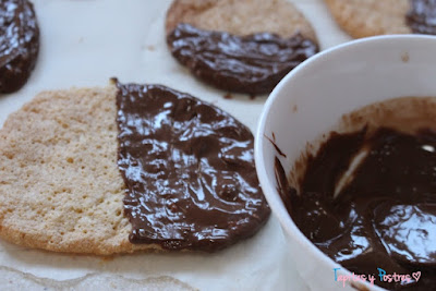Luego derretiremos 50 gr de chocolate para postres y pintamos la mitad. Yo dejé algunas sin bañar en chocolate.