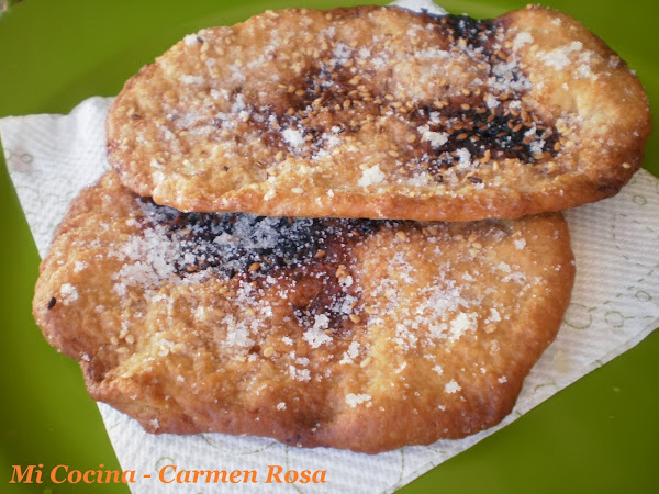 Torta muy malagueña, que he preparado en Mi cocina, por demostrarme que puedo intentar hacerla, a la que le he dado ese ?toque? de las deliciosas y genuinas tortas andaluzas, las genuinas tortas de aceite Inés Rosales; tortas que nunca, nunca faltan en mi cocina, ya que a mi marido les encanta.