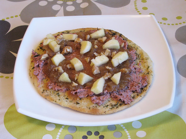 Pon sobre el paté una cucharada de cebolla caramelizada en cada torta y extiéndelo.