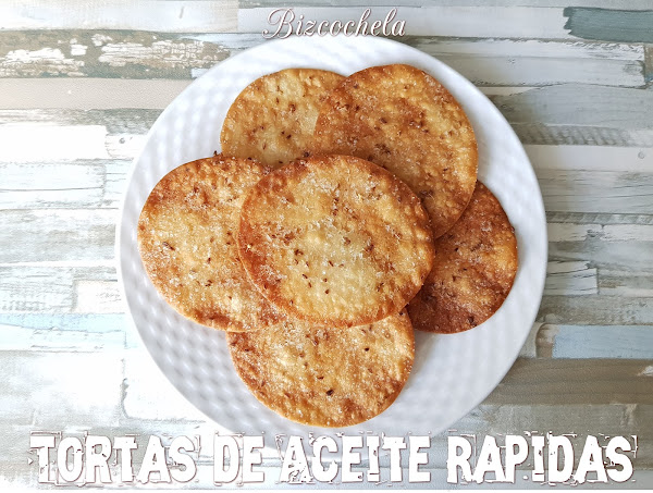 Pues hoy os traigo estas riquísmas TORTAS DE ACEITE RÁPIDAS, EN 7 MINUTOS, que es lo que he tardado en hacerlas para darme un capricho, aunque ya se que con la operación bikini esto no es muy recomendable.....