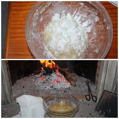 Incorporamos el resto de la harina y amasamos. Nos quedará una masa pegajosa y blandita aunque con cierta manejabilidad. Una vez lista la tapamos y la dejamos en un lugar calentito para levar hasta que doble su volumen. Yo como hemos tenido estas semanas de frío la puse delante de la chimenea (siguiendo el consejo de mi padre, ya sabéis que fue panadero más de 60 años).